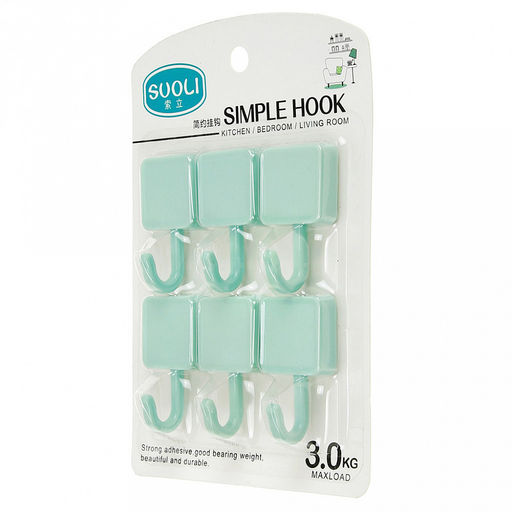 Крючок на липучке "Кубик" пластмассовый, 6 штук, 3х5,5х2,4см, в блистере (Китай)