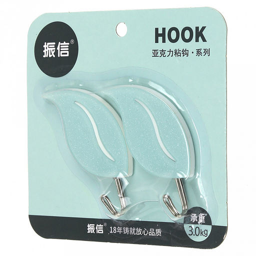 Крючок на липучке "Лист" металлический с пластмассовым основанием, 2 штуки 4х8,5х2см, в блистере, мятный (Китай)