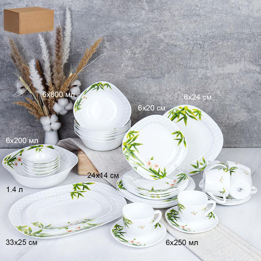 Столовый набор 39 предмет квадратный / GRAY Sq 39/75 (6773) /уп 2/ Бамбук с орхидеей