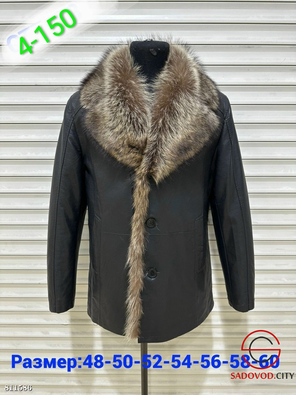 Зимняя мужская кожаная куртка с меховым воротником