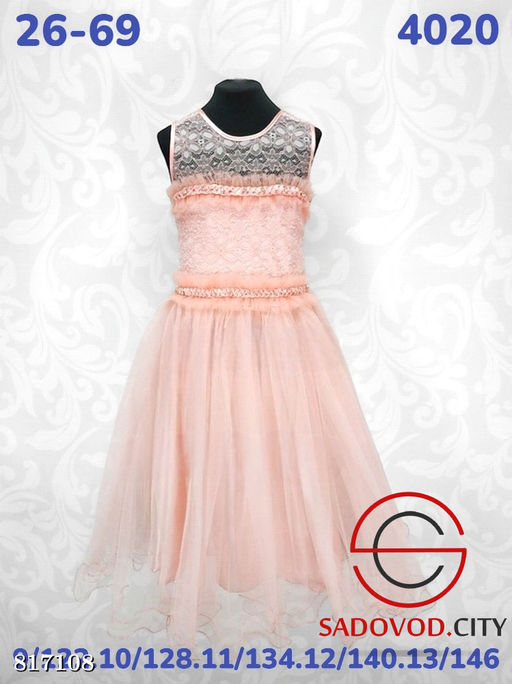 Нарядное платье для девочек с декором из страз и кружева