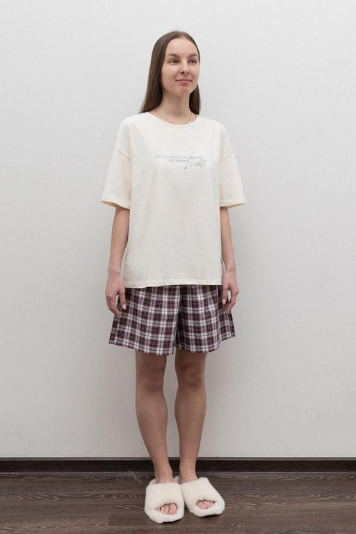 Артикул: ЕП 20169/1/античный белый,клетка пижама жен