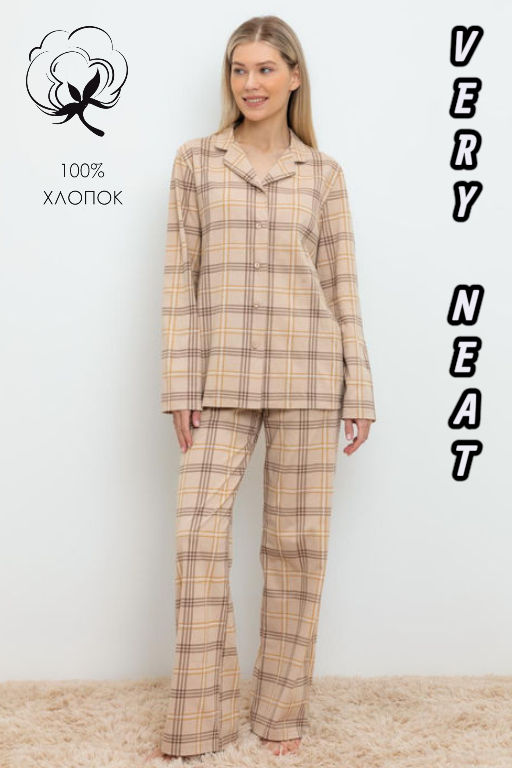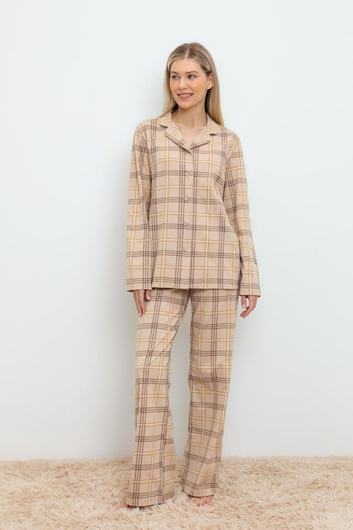Артикул: ЕП 20168/бежевый,текстильная клетка пижамы жен