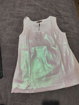 Топ в рубчик с широкими лямками с матовым покрытием металлик из хлопка с эластаном