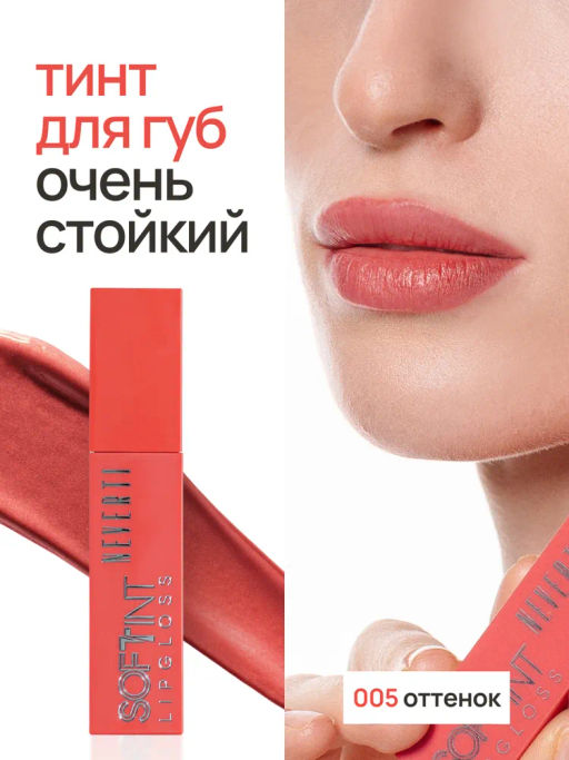 Neverti NP802 Блеск-тинт мягкий тонирующий для губ "Soft Tint Lipgloss" тон 005 4,5 мл