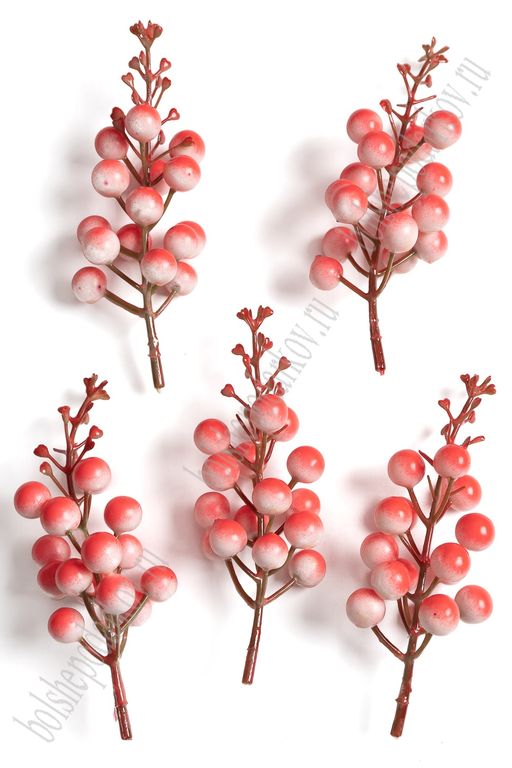 Ягоды на веточке (10 веточек) SF-022, св.- красный/белый