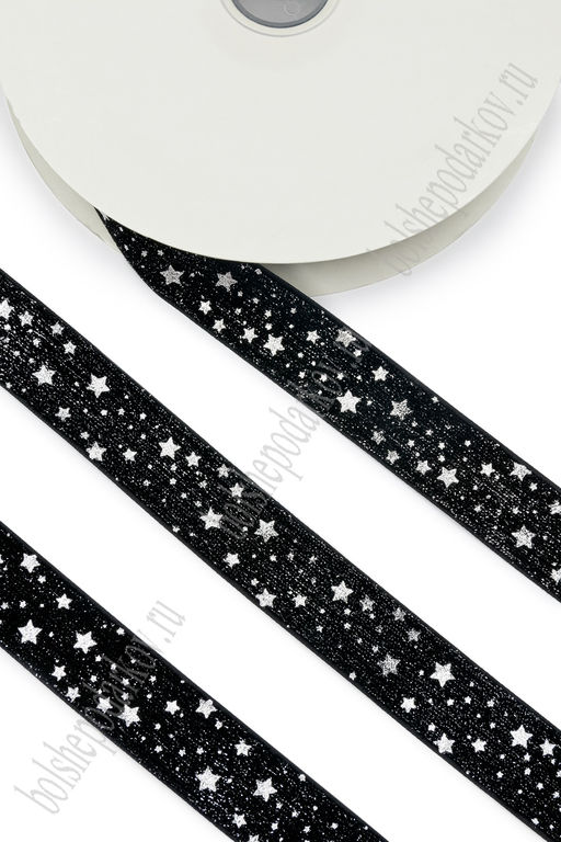 Лента бархатная 2,5 см*20 ярд "Звёздочки" с декоративным покрытием и люрексом (SF-7610) черный №3