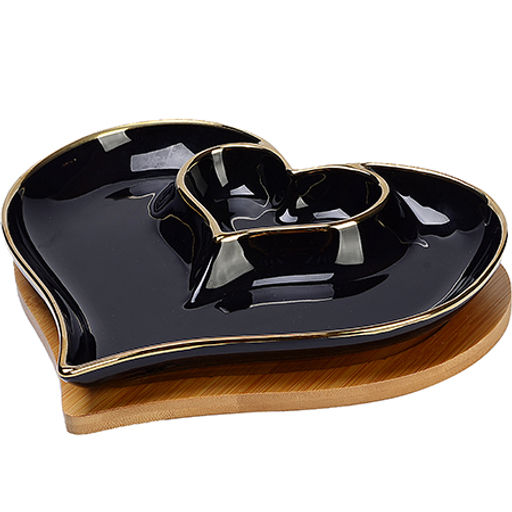 12089 Менажница Сердце 2 секции с подставкой 2пр фарфор/дерево LR (х24)