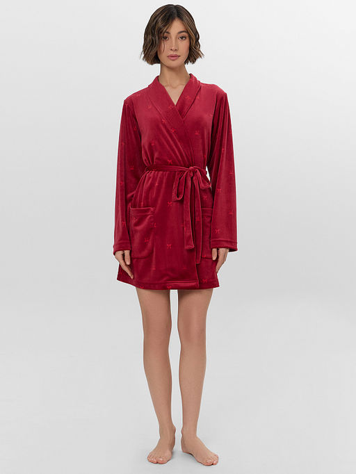 Халат женский красный с узором бантиков