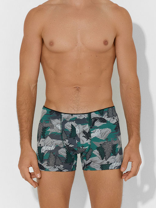 Цена за 2 штуки! Трусы боксеры мужские зеленые с принтом