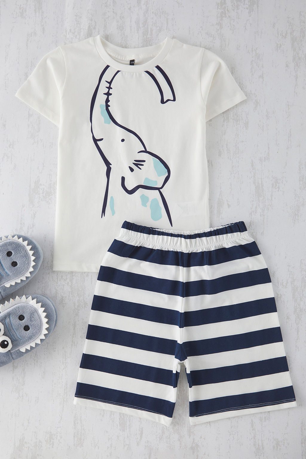 Ekru Erkek Cocuk %100 Pamuk Fil Bask?l? K?sa Kol Orme Pijama Tak?m? TKDSS25PT00019