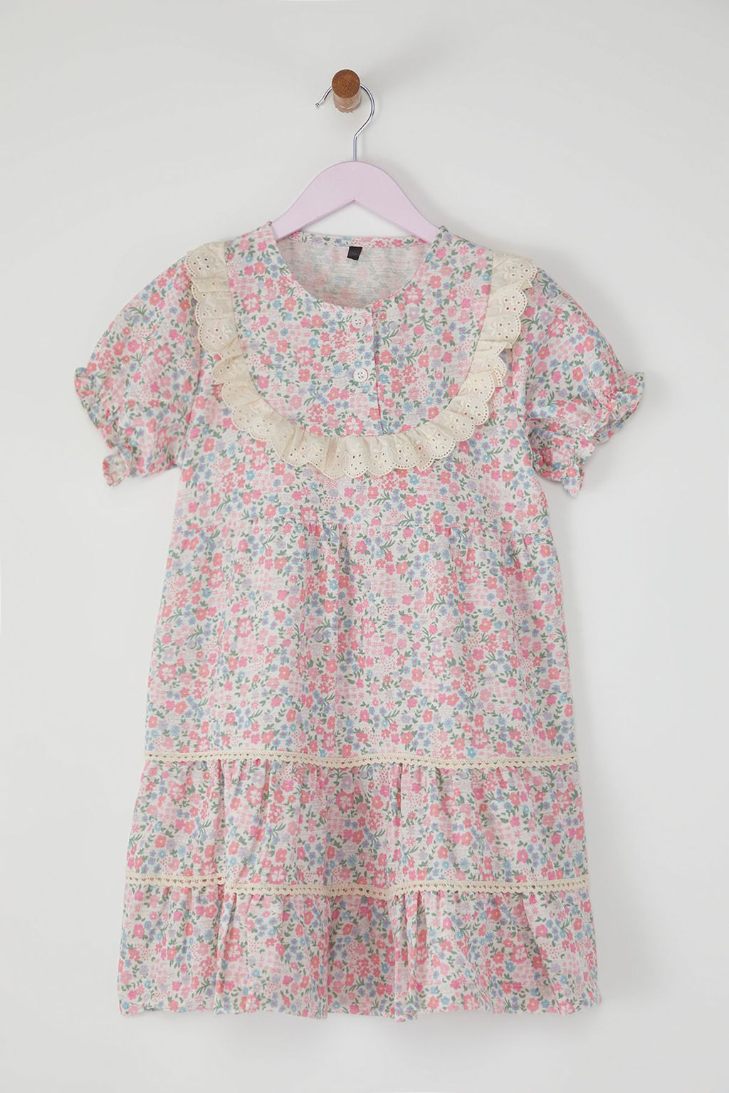 Cok Renkli K?z Cocuk Pamuklu Cicekli Brodeli K?sa Kol Mini Bayraml?k Dokuma Elbise TKDSS25EL00024