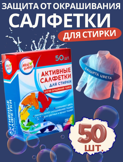 Активные салфетки для стирки «Мой выбор», для разноцветных тканей, 50 шт.