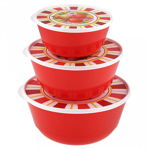 Миска пластмассовая "Bergamo" набор 3шт: 1л, 2л, 3л, с крышкой, с декором "Сицилия", красный (Россия)