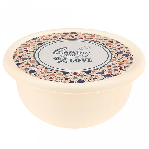 Миска пластмассовая "Modena" 1,2л, д18см, h8см, с крышкой, с декором "Терраццо", светло-бежевый (Россия)