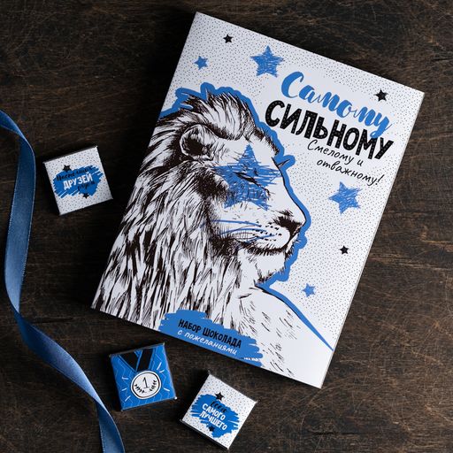 Набор 12 шоколадок "Самому сильному, смелому и отважному (рисунок льва)"