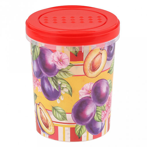 Банка пластмассовая "Asti" 1л, д11,5см, h14,7см, с завинчивающейся крышкой, с декором "Сицилия", красный (Россия)