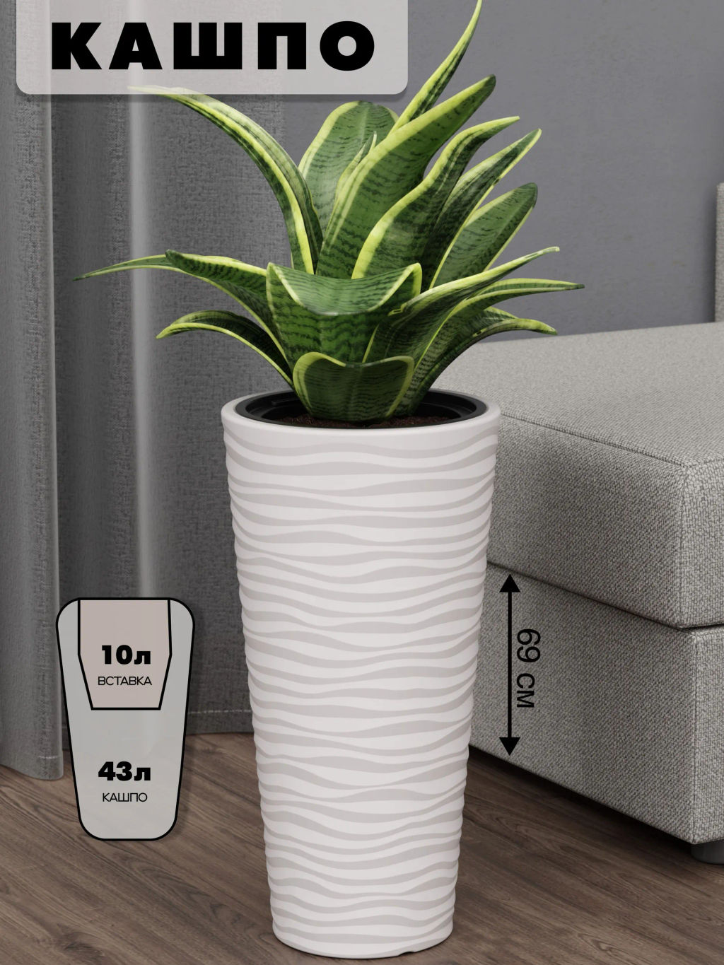 Кашпо "Оазис" 43л (со вставкой 10л) белый М8078