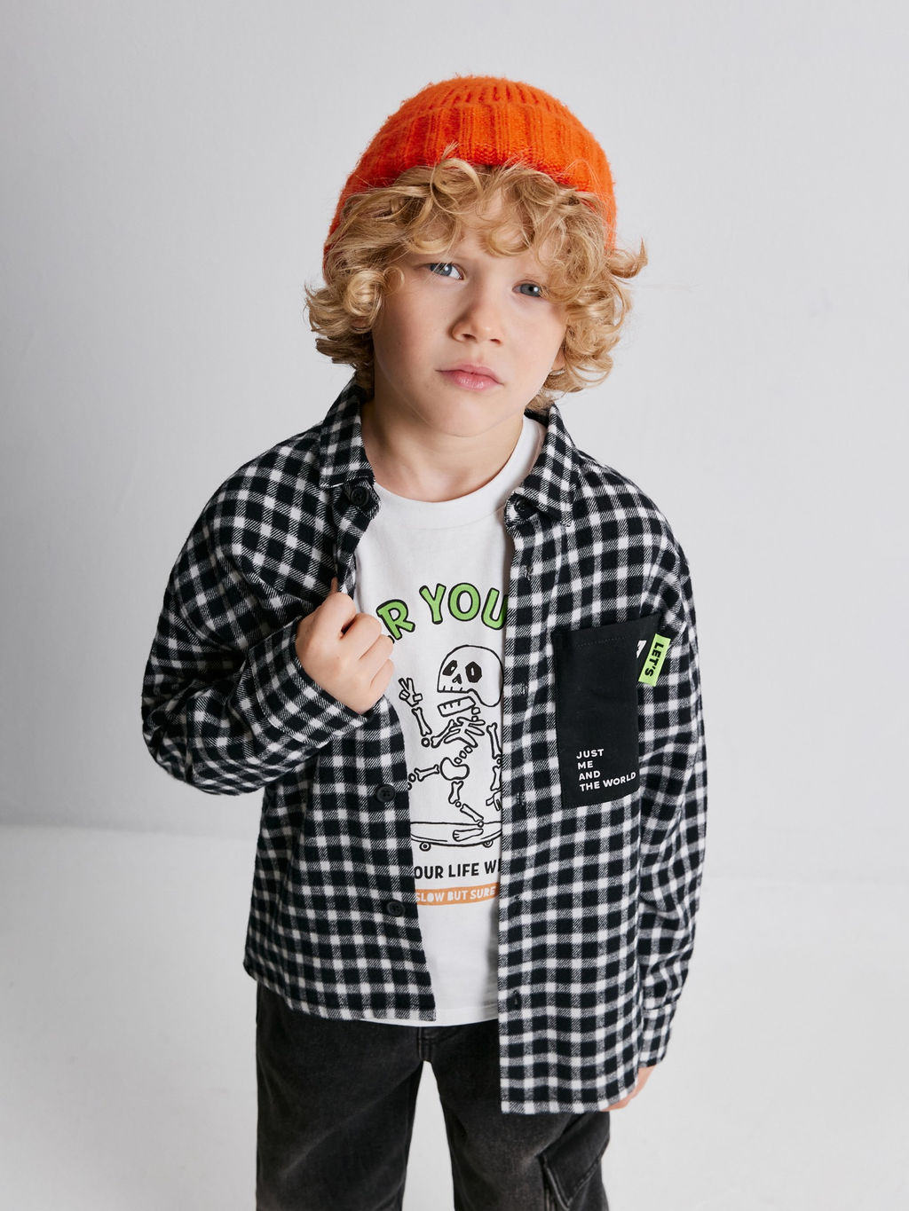 ACOOLA / Сорочка верхняя детская для мальчиков Pablu черно-белая клетка