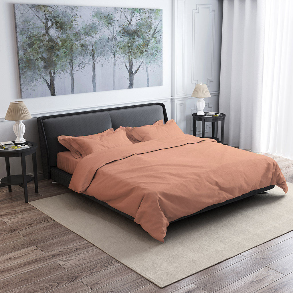 Постельное белье, комплект Евро Макси "Персик", 4 предмета: пододеяльник 240х215см на кнопках, простыня 220х240см, 2 наволочки 50х70см с клапаном-запахом, перкаль 115г/м2, хлопок 100%, упаковка "классическая" ПВХ 34,5х41см, "Домашняя мода" (Россия)
