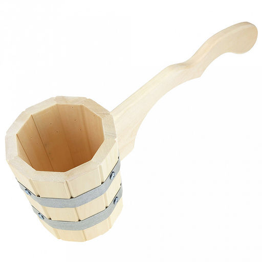 Ковш для бани деревянный 1л, д25см, h15см, горизонтальная ручка 21см, двойная металлическая обвязка, липа (Россия)