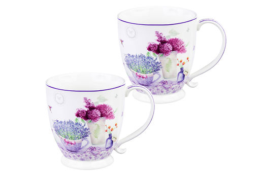 Набор 2 кружек 450 мл 13,5*10*10,5 см "Лаванда" на ножке, NEW BONE CHINA