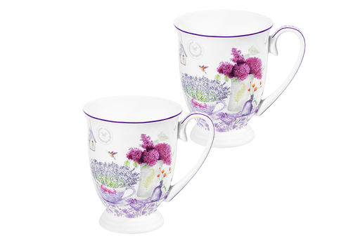 Набор 2 кружек 300 мл 11*8*11 см "Лаванда" на ножке, NEW BONE CHINA