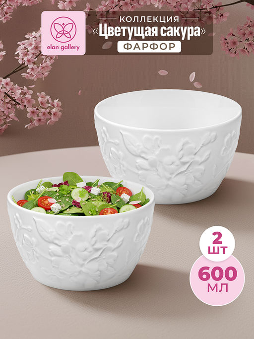 Набор 2 салатников 600 мл 13*13*7,5 см "Цветущая сакура", фарфор