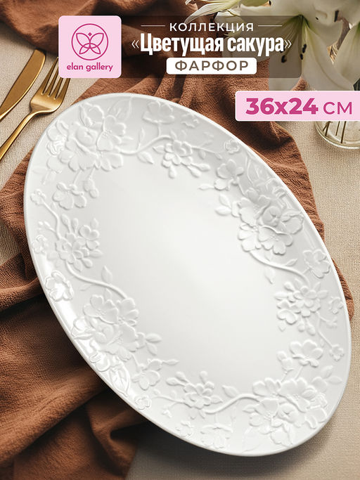 Блюдо овальное 36,5*24*3 см "Цветущая сакура" большое, фарфор
