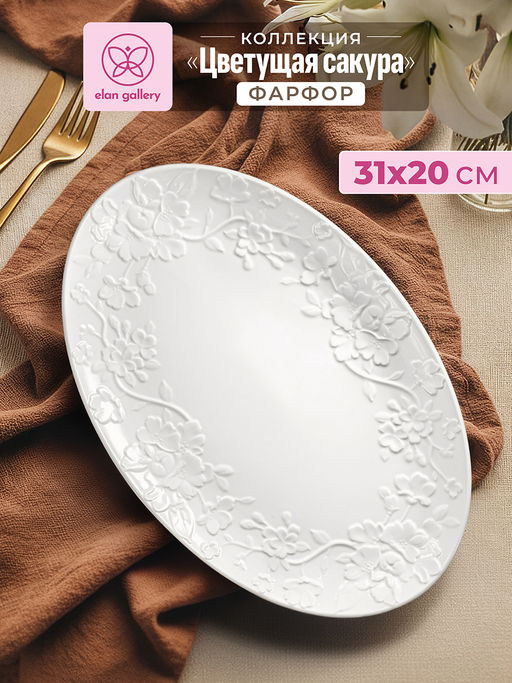 Блюдо овальное 31*20,5*2,5 см "Цветущая сакура" малое, фарфор