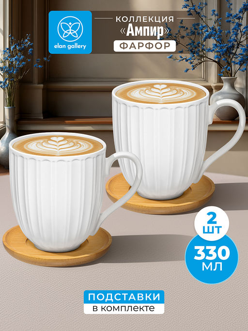Чайная пара 4 пр. 330 мл 12*8,5*9,5 см "Ампир" + деревянная подставка