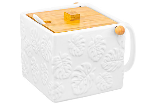 Банка д/сыпучих продуктов 1 л 16,5*15*12 см "Тропики" с бамбуковой крышкой, ложкой