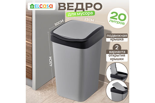Ведро для мусора с подвижной крышкой 20 л 30*23,5*43 см "Тандем" сер.металлик/черный (842058)