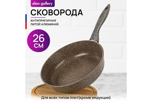 Сковорода глубокая 26 см ГАРМОНИЯ ВКУСА "Коричневый опал" без крышки, н/р, 45,5*27*12 см