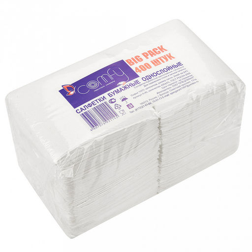 Салфетки бумажные "БигПак" 24х24см, 400шт в упаковке, целлюлоза 100%, белый, ГОСТ Р 52354-2005, Comfy (Россия)