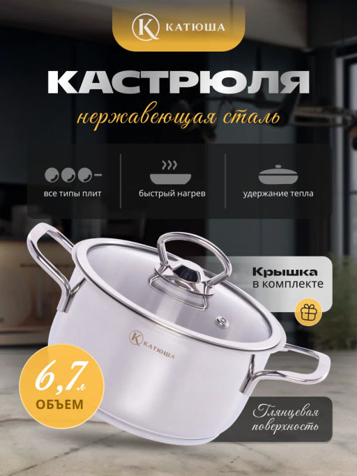 Кастрюля 6,7л Марта стек. крышка 100-24-0