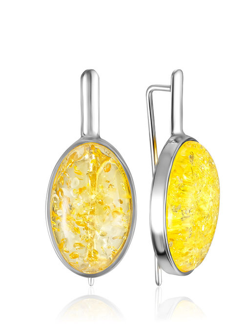 Красивые крупные серьги Годжи с искрящимся лимонным янтарём