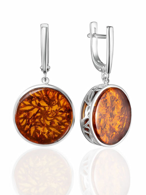 Подвесные серьги с натуральным янтарём коньячного цвета Бельтайн