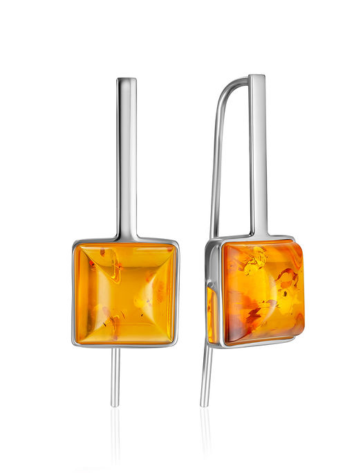 Серьги-крючки из натурального янтаря золотисто-лимонного цвета Овация