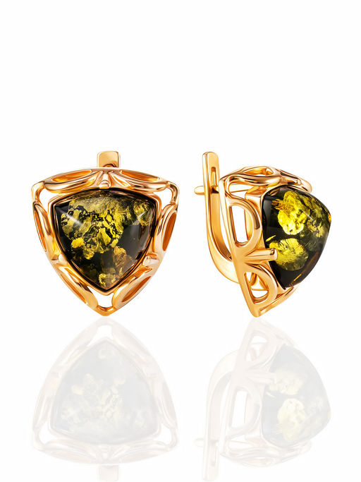 Красивые серьги Арабеска с янтарём зелёного цвета
