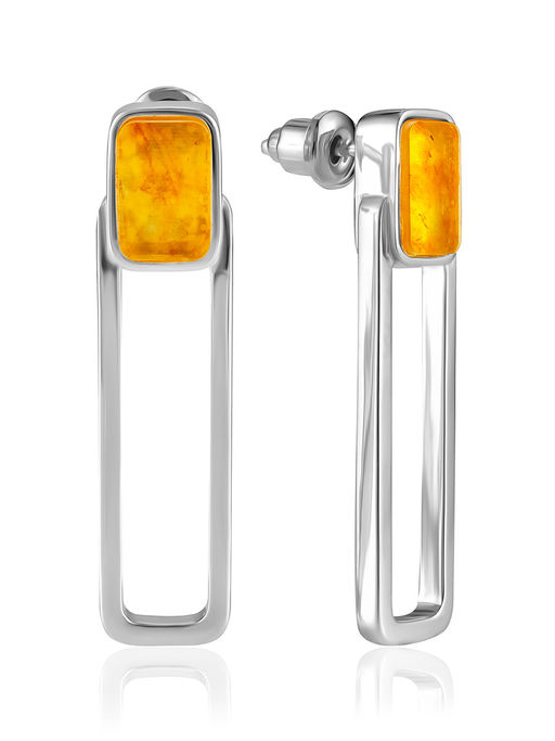 Серьги-гвоздики London с вставками из лимонного янтаря