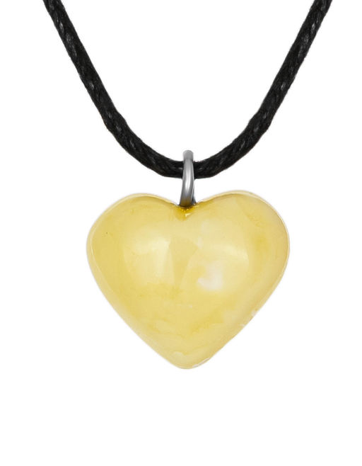 Небольшой кулон в форме сердца из молочно-медового янтаря с пейзажной текстурой