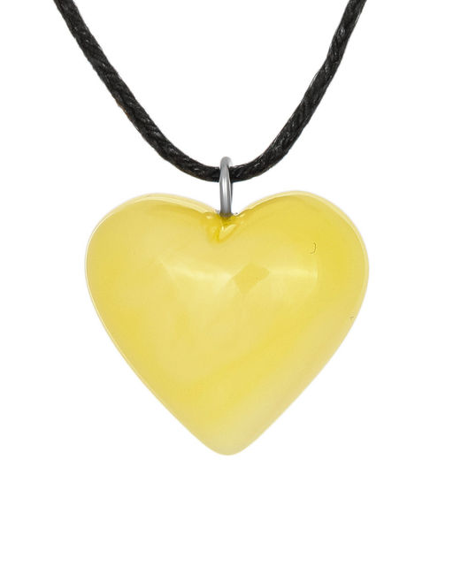 Сердце из натурального цельного молочно-медового янтаря на шнурке