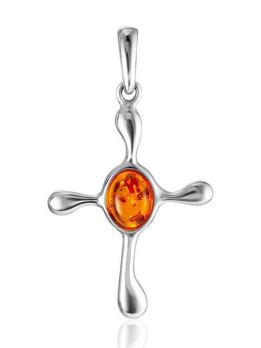 Лёгкий нательный крестик с натуральным янтарём коньячного цвета