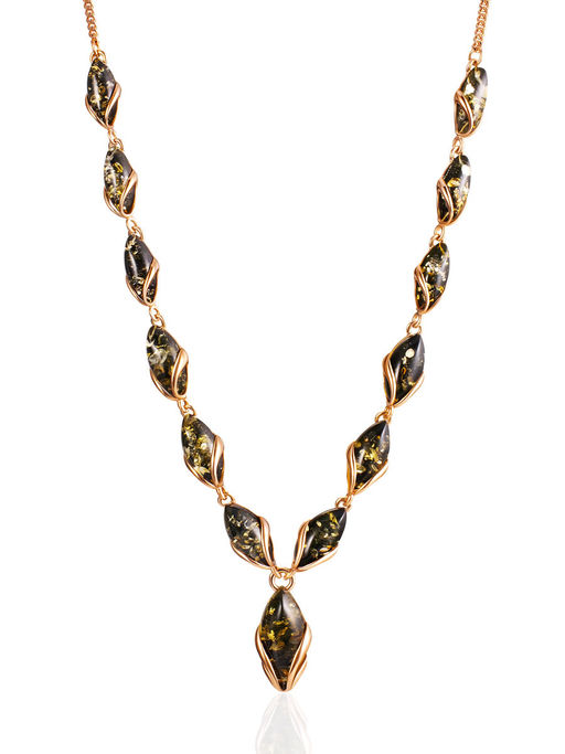 Колье-цепочка Подснежник с вставками искрящегося зелёного янтаря