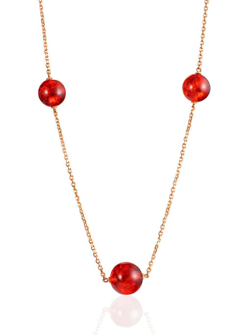 Позолоченное колье с шариками-проставками из янтаря алого цвета Олимпия