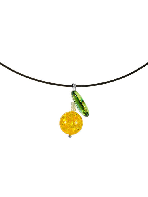 Колье-обруч с подвеской из натурального янтаря Яблочко