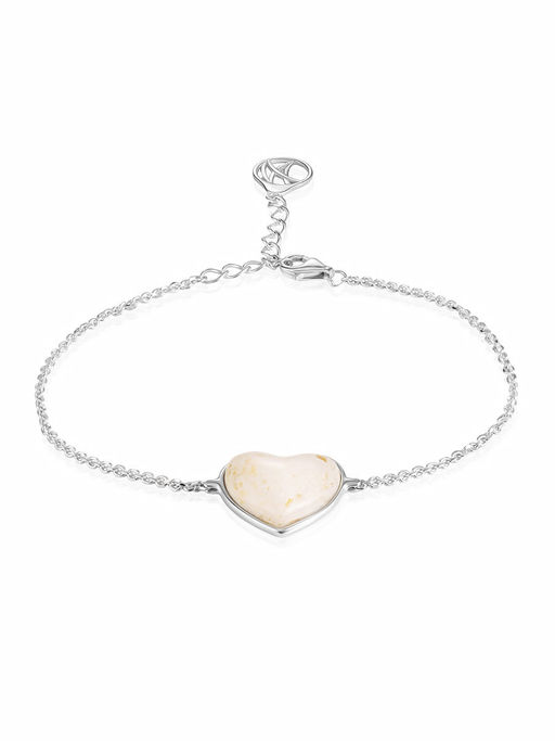 Изящный браслет-цепочка с сердечком из молочного янтаря