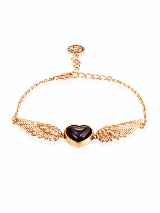 Изысканный позолоченный браслет Сердце с натуральным вишнёвым янтарём