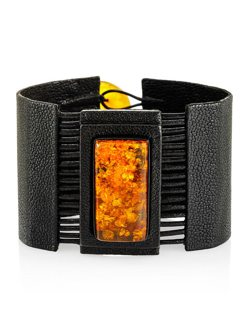 Стильный браслет-манжета из натуральной кожи и янтаря Амазонка